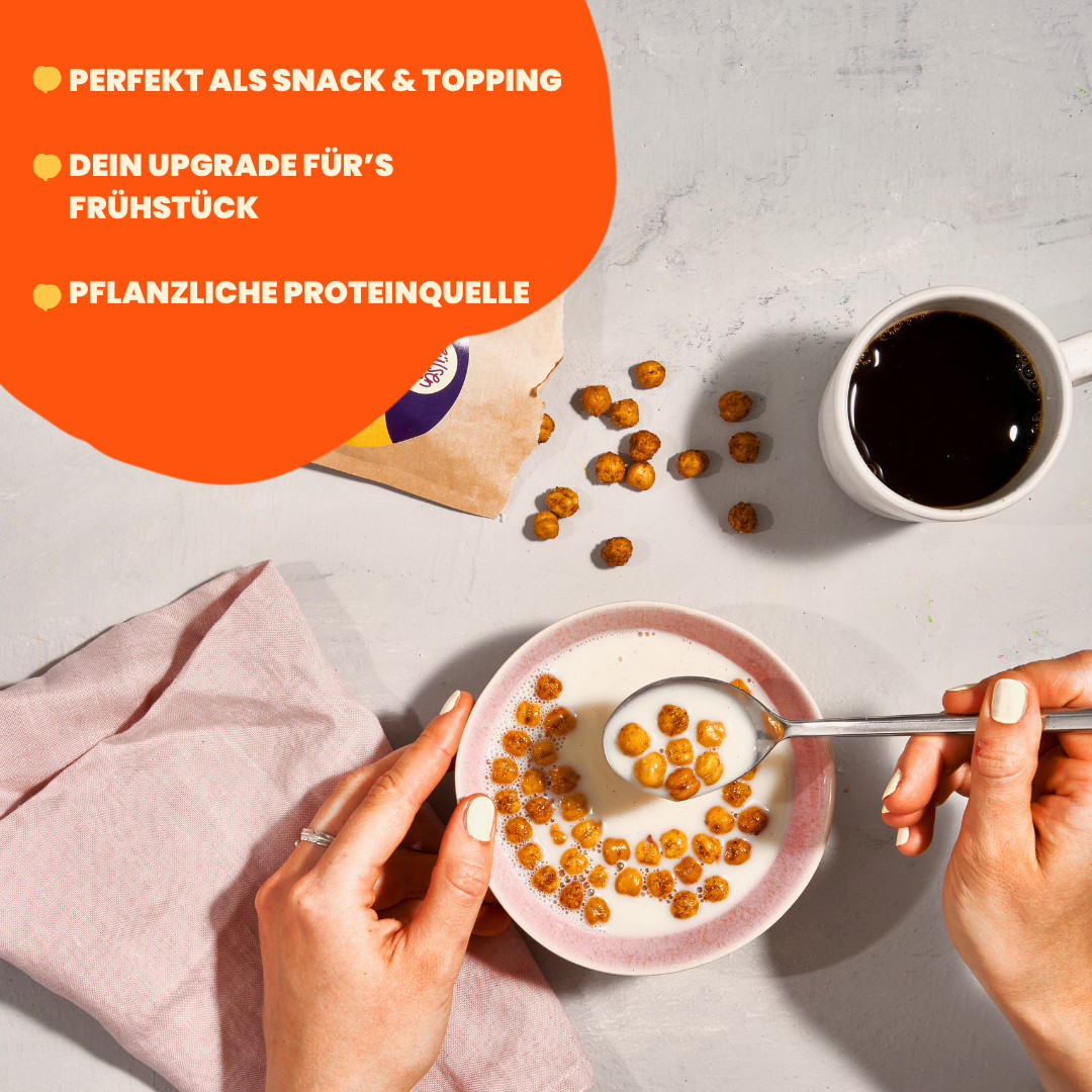 Entdecke ein Knabbererlebnis der besonderen Art mit unseren gerösteten Kichererbsen-Snacks! Unsere...